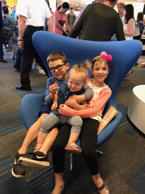 When I said goodbye to her this morning, I cried. It didn’t help that my sister was crying, too. But I’m so happy that Scarlett gets to spend the week with my parents, my grandma, my uncle, my brother and his girlfriend, my sister and her incredible family. We got photos from the airport, three kids in a lounge chair, looking like siblings. Looking just right, like they belonged together and they were on their way to a great adventure.