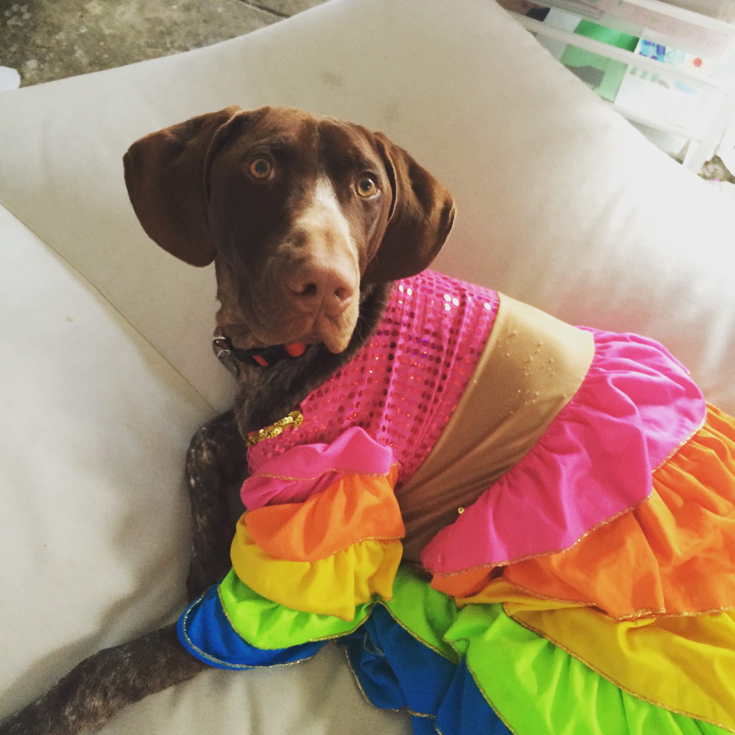 And for some reason, which is not totally clear to me, Otto is decked out in a multicolored ensemble that makes him look like the Chiquita banana lady.